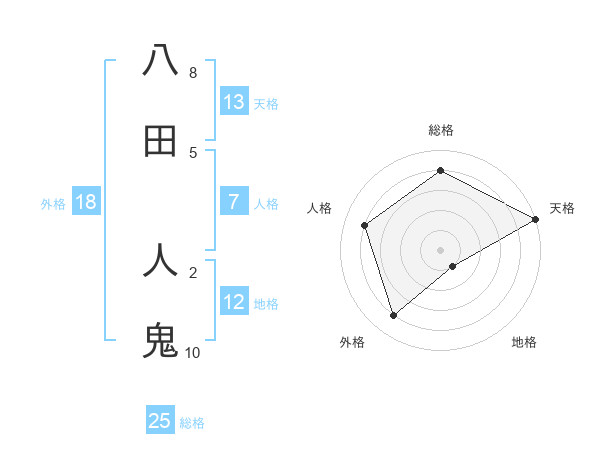 八田 人鬼さんの天格は13画の5点!