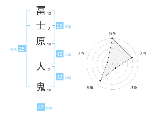 冨士原 人鬼さんの総格は37画の5点!