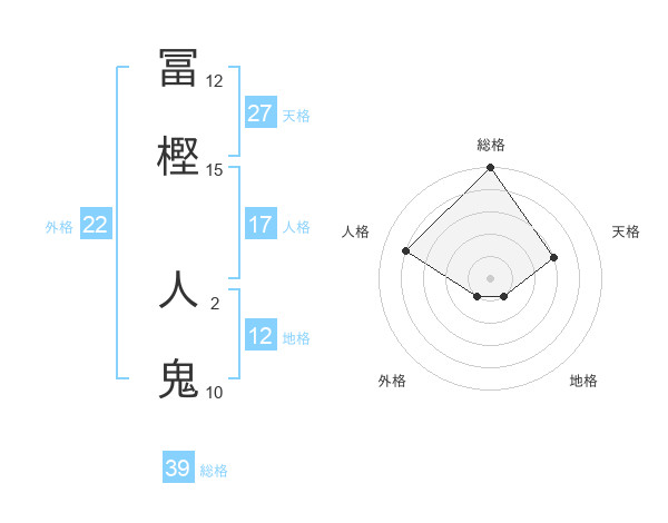 冨樫 人鬼さんの総格は39画の5点!