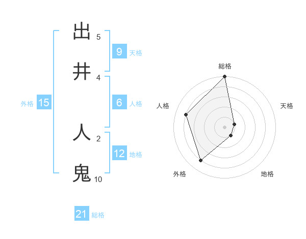 出井 人鬼さんを姓名の画数から五運を鑑定