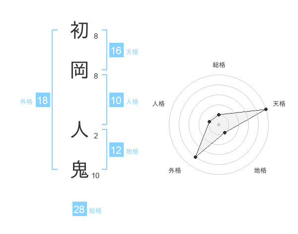 初岡 人鬼さんの総格は28画の1点!