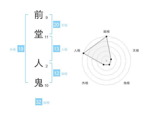 前堂 人鬼さんの総格は32画の5点!