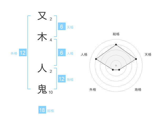 又木 人鬼さんの天格は6画の4点!