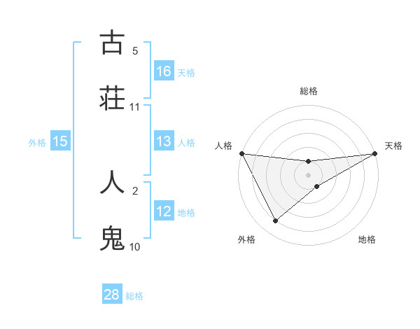 古荘 人鬼さんを姓名の画数から五運を鑑定