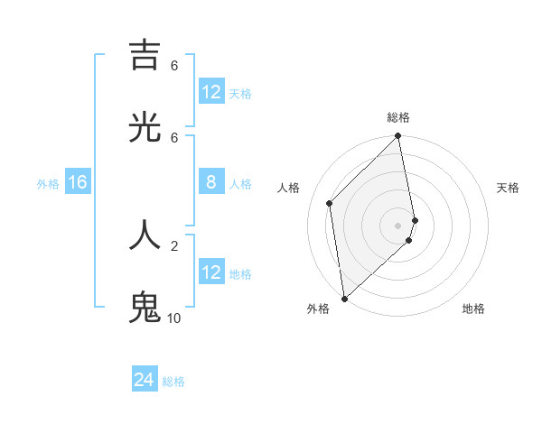 吉光 人鬼さんを姓名の画数から五運を鑑定