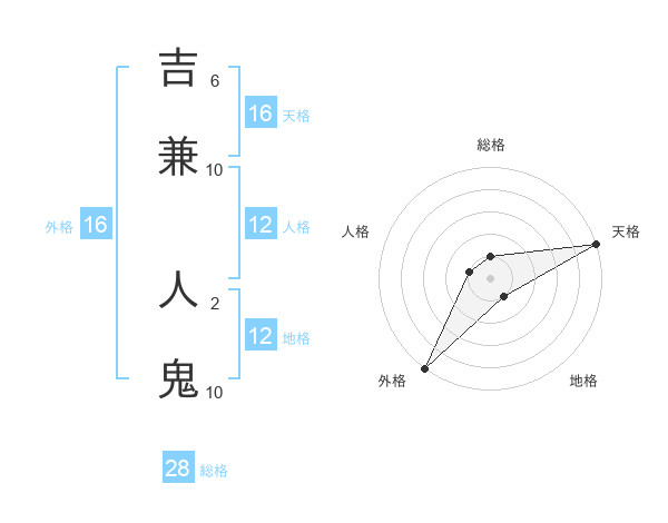 吉兼 人鬼さんの外格は16画の5点!