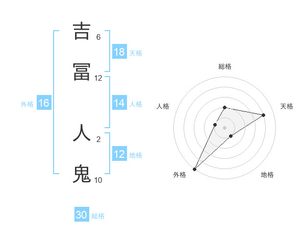 吉冨 人鬼さんの総格は30画の2点!