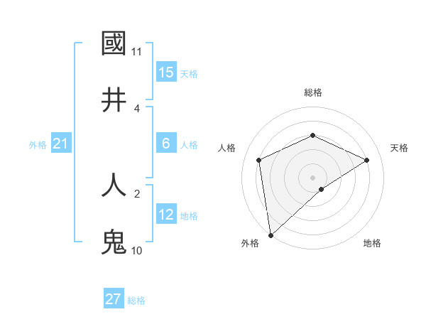 國井 人鬼さんを姓名の画数から五運を鑑定