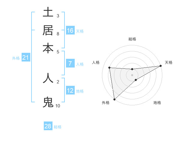 土居本 人鬼さんを姓名の画数から五運を鑑定