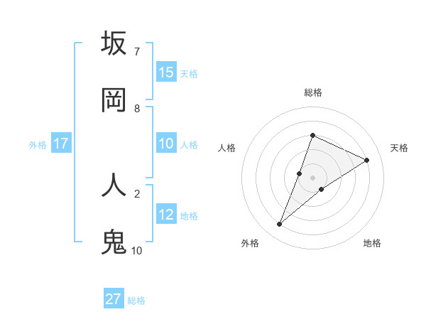 坂岡 人鬼さんの総格は27画の3点!
