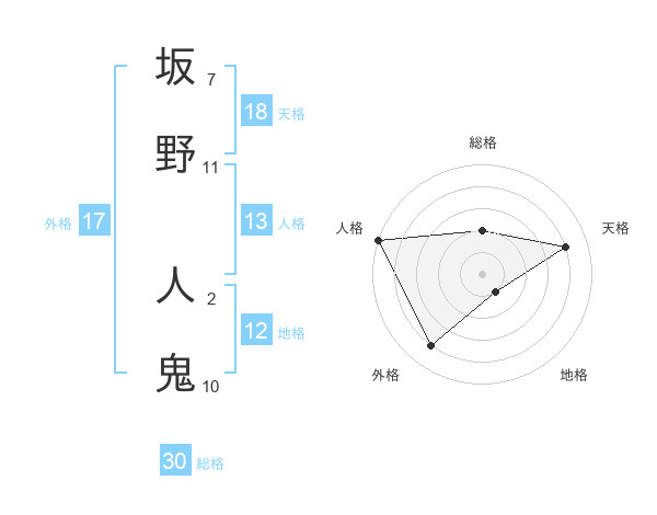 坂野 人鬼さんを姓名の画数から五運を鑑定