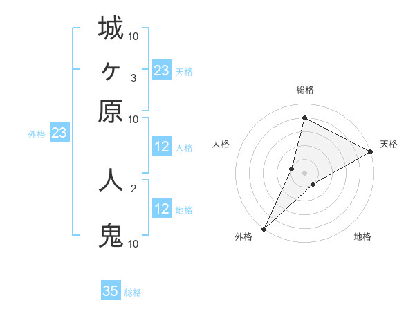 城ヶ原 人鬼さんの総格は35画の4点!