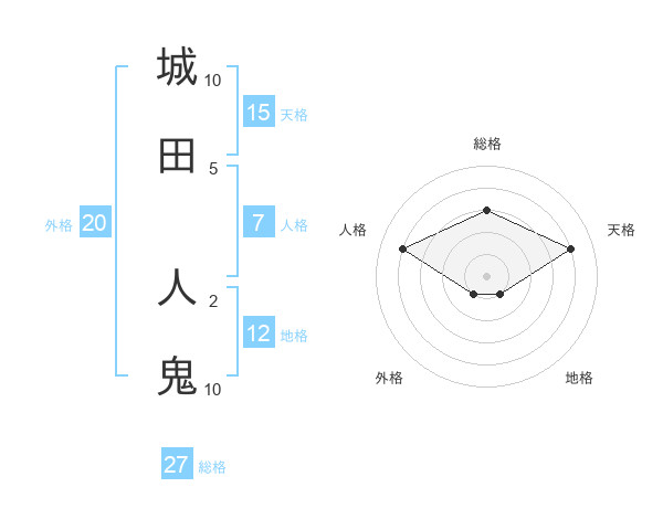 城田 人鬼さんの総格は27画の3点!