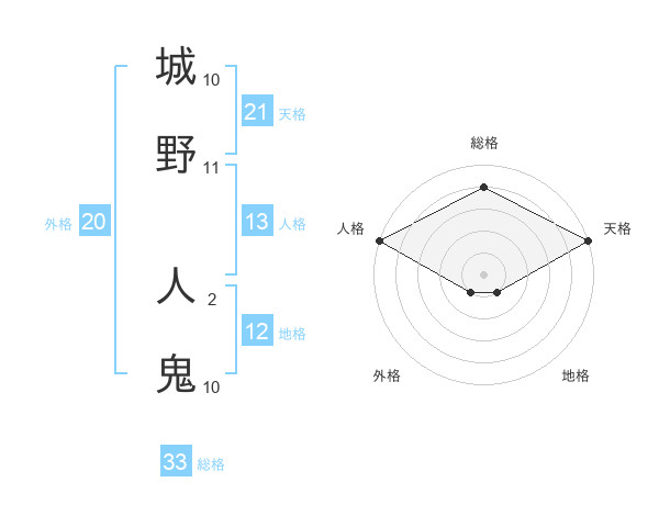 城野 人鬼さんを姓名の画数から五運を鑑定