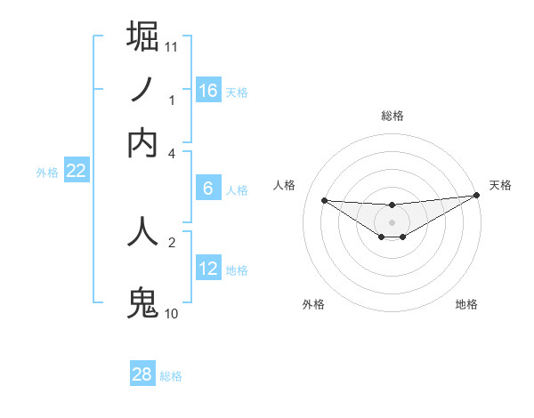 堀ノ内 人鬼さんの総格は28画の1点!