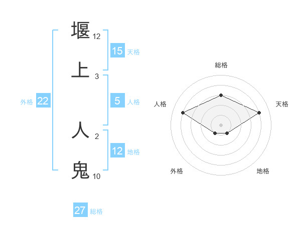 堰上 人鬼さんを姓名の画数から五運を鑑定