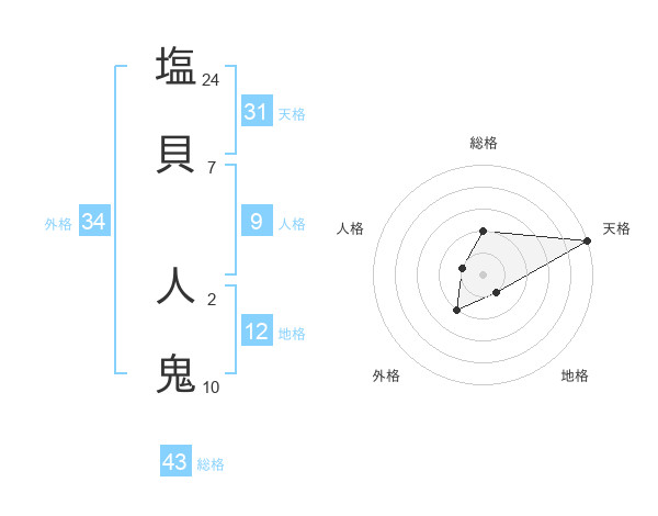 塩貝 人鬼さんを姓名の画数から五運を鑑定