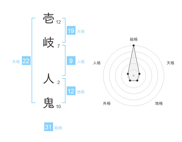 壱岐 人鬼さんの総格は31画の5点!