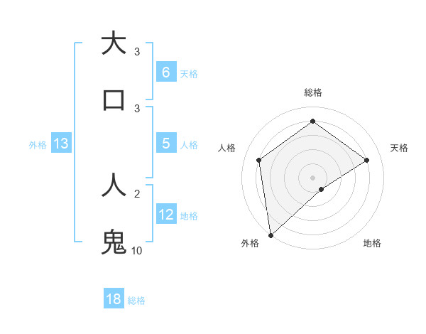 大口 人鬼さんの外格は13画の5点!