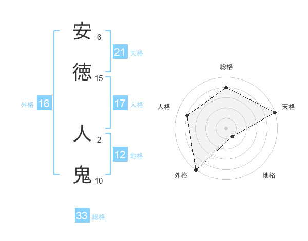安徳 人鬼さんの外格は16画の5点!