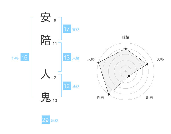安陪 人鬼さんの外格は16画の5点!