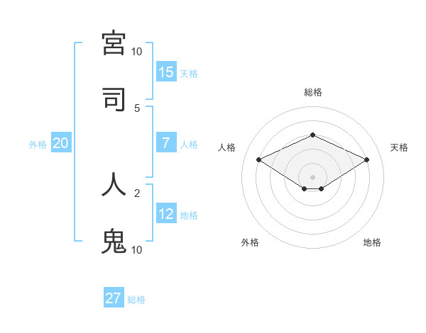 宮司 人鬼さんを姓名の画数から五運を鑑定