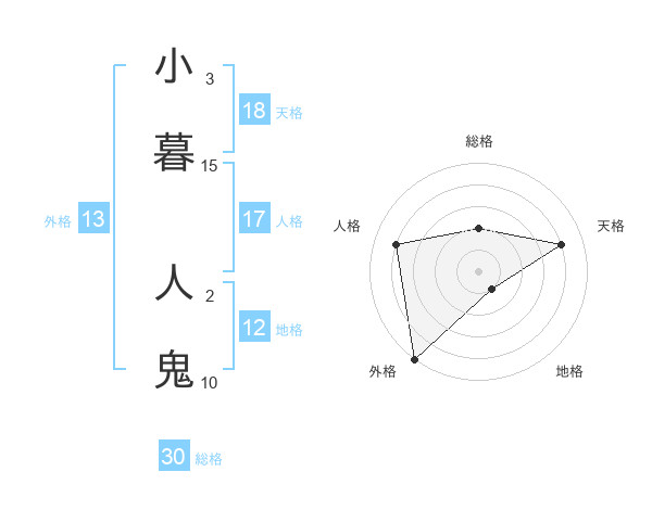 小暮 人鬼さんを姓名の画数から五運を鑑定