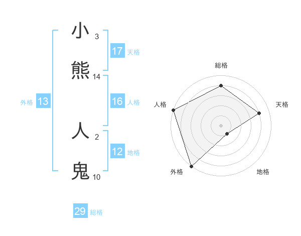 小熊 人鬼さんの総格は29画の4点!