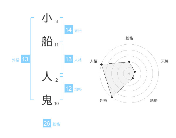 小船 人鬼さんの外格は13画の5点!