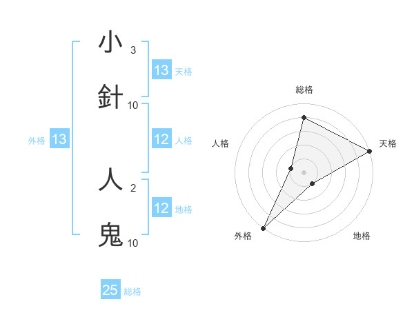小針 人鬼さんの天格は13画の5点!