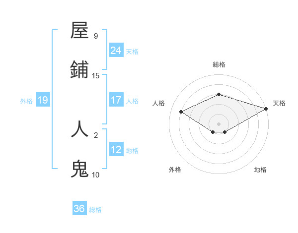 屋鋪 人鬼さんの天格は24画の5点!