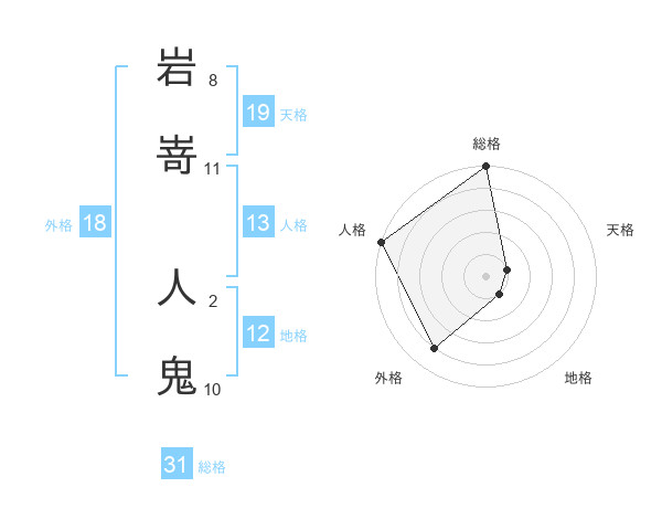 岩嵜 人鬼さんの総格は31画の5点!