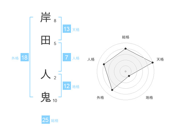 岸田 人鬼さんを姓名の画数から五運を鑑定