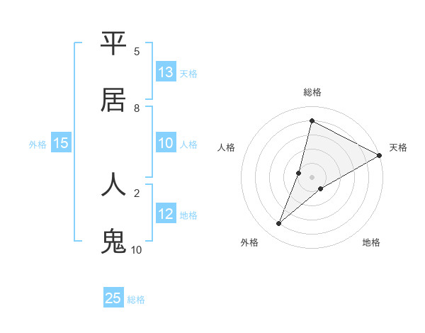 平居 人鬼さんの総格は25画の4点!