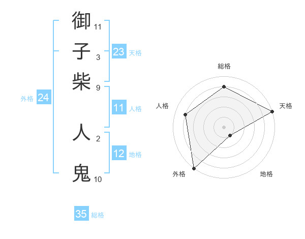 御子柴 人鬼さんの総格は35画の4点!