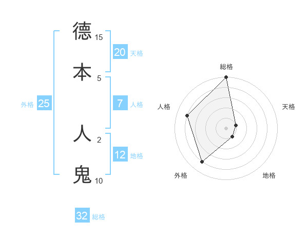 德本 人鬼さんの地格は12画の1点!