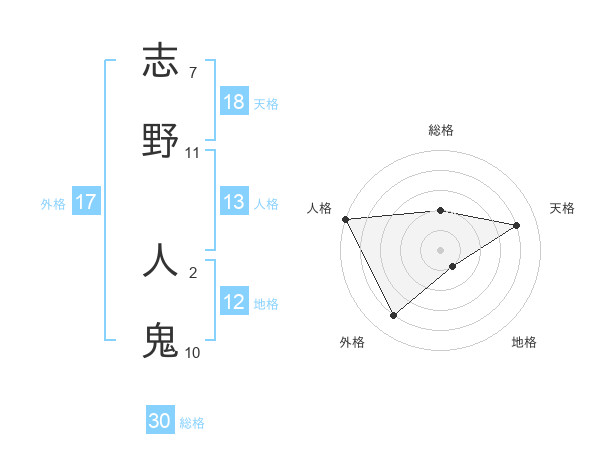 志野 人鬼さんを姓名の画数から五運を鑑定