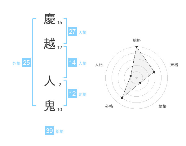 慶越 人鬼さんを姓名の画数から五運を鑑定