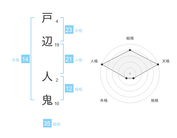 戸辺 人鬼さんを姓名の画数から五運を鑑定
