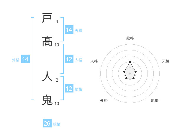 戸髙 人鬼さんの総格は26画の2点!
