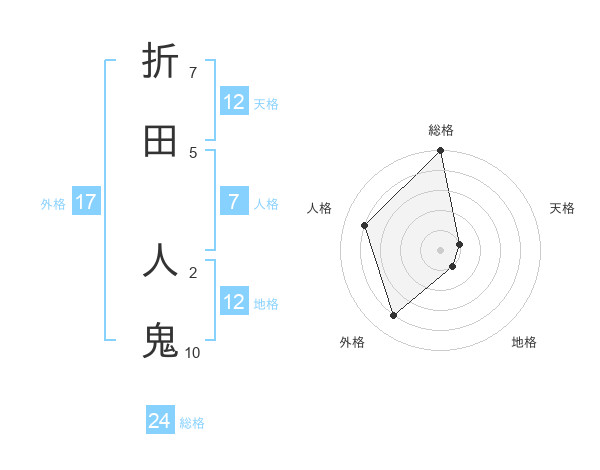 折田 人鬼さんを姓名の画数から五運を鑑定