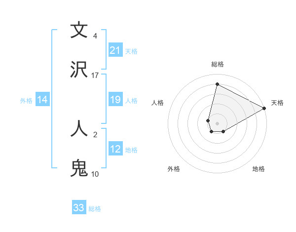 文沢 人鬼さんの総格は33画の4点!