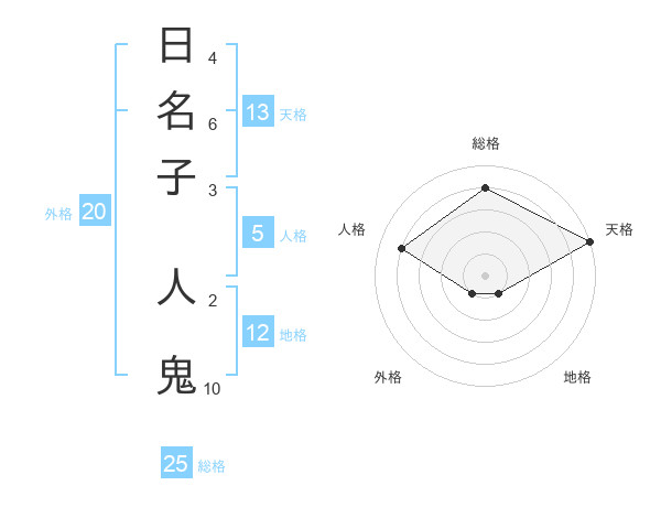 日名子 人鬼さんを姓名の画数から五運を鑑定