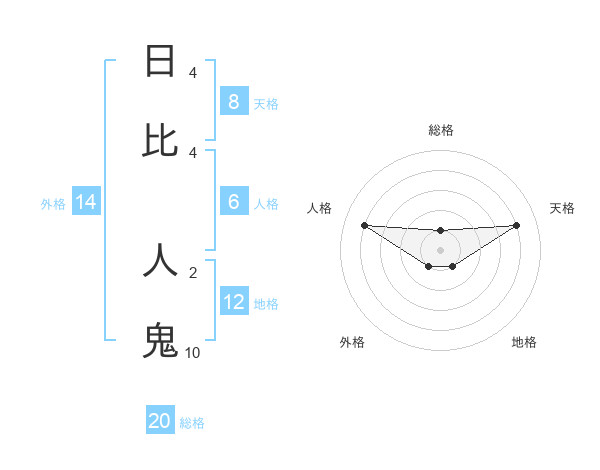 日比 人鬼さんを姓名の画数から五運を鑑定