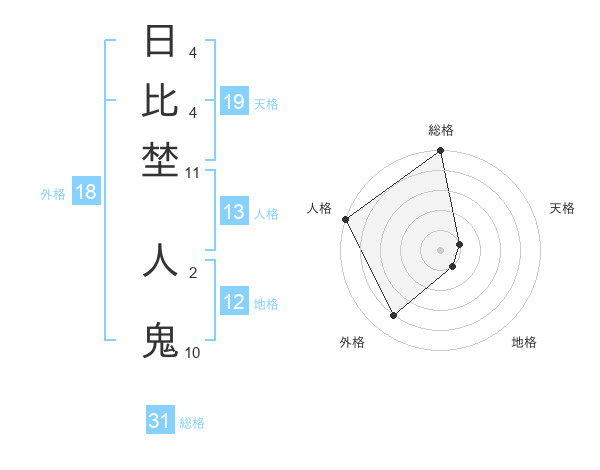 日比埜 人鬼さんを姓名の画数から五運を鑑定