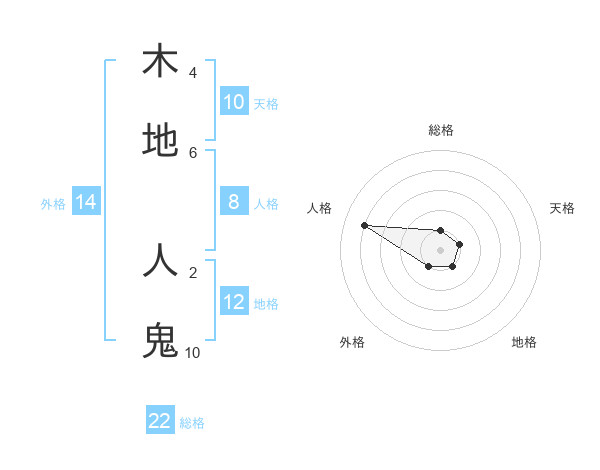 木地 人鬼さんの総格は22画の1点!
