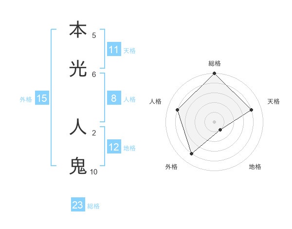 本光 人鬼さんの総格は23画の5点!
