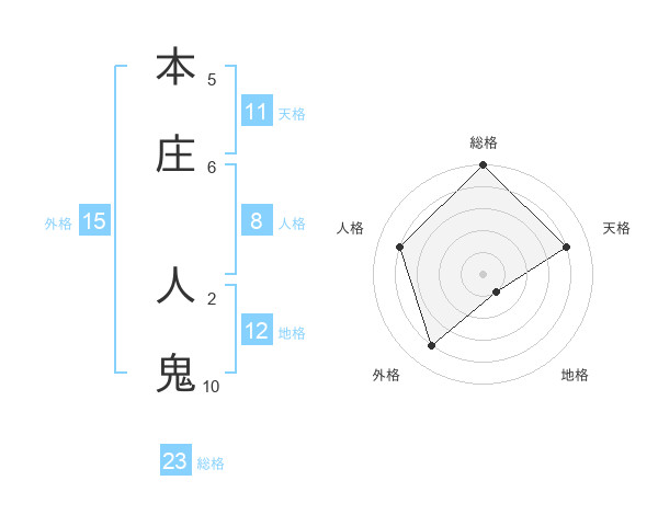 本庄 人鬼さんを姓名の画数から五運を鑑定