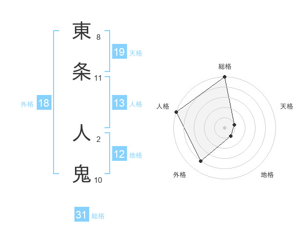 東条 人鬼さんを姓名の画数から五運を鑑定