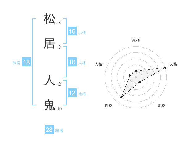 松居 人鬼さんを姓名の画数から五運を鑑定